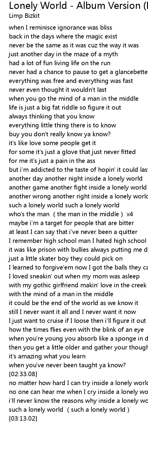 | [03:01.68] | i'll never know the reasons why inside a lonely world |