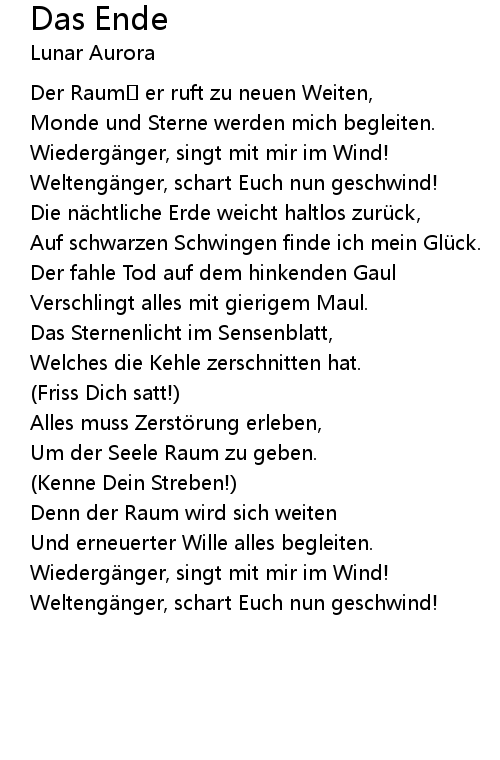 | Song | Das Ende |