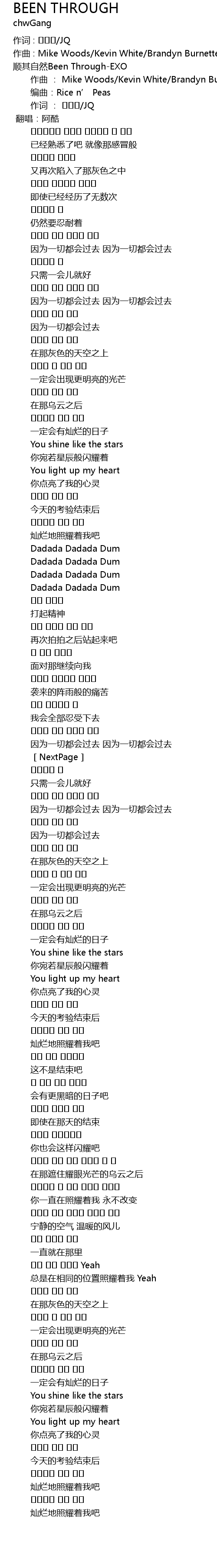 | 顺其自然Been Through-EXO | |