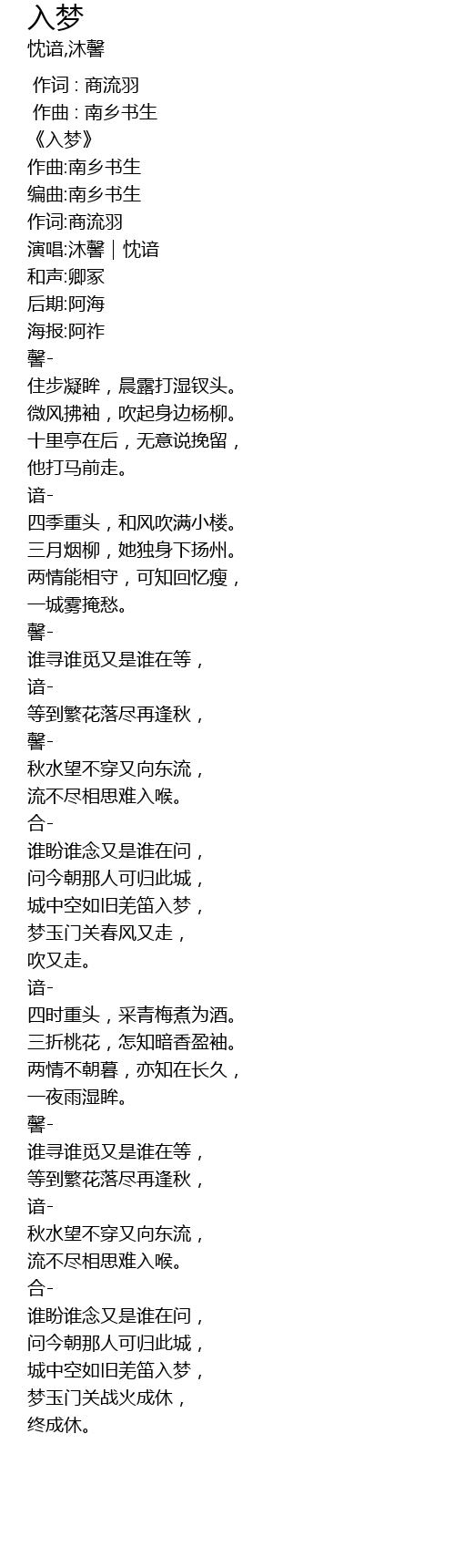 | [00:03.477] | 《入梦》 |