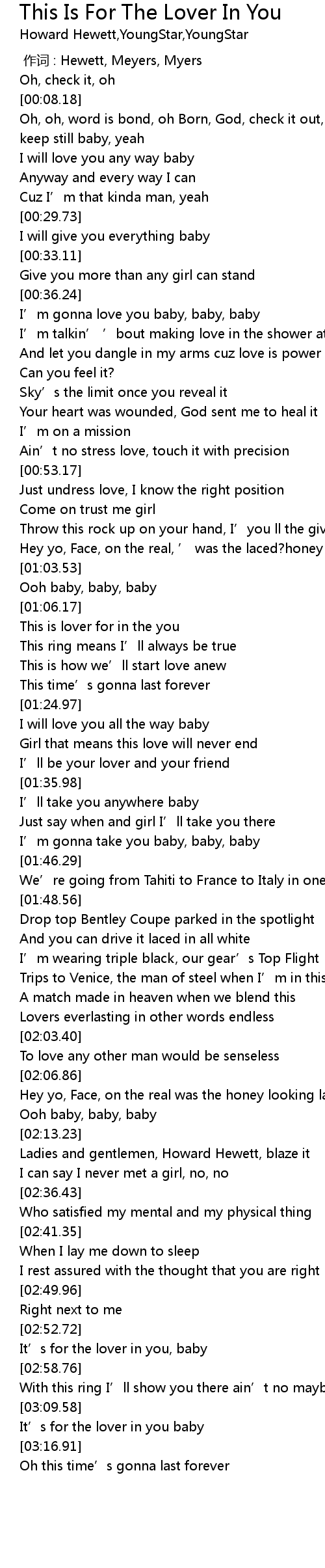 | [00:39.63] | I’m talkin’ ’bout making love in the shower at least a hour |