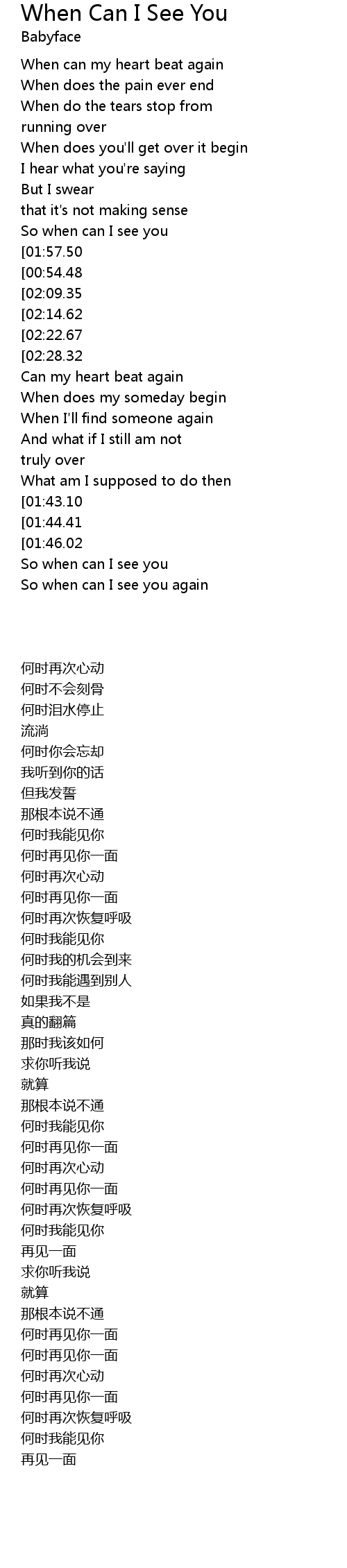 When can I see you again |