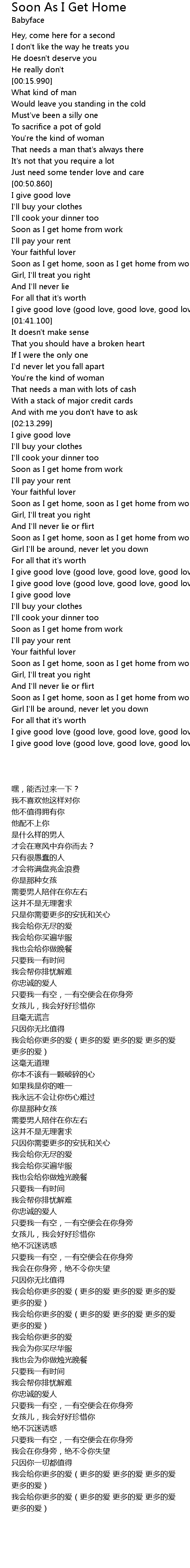 | [02:59.99] | Soon as I get home, soon as I get home from work |
