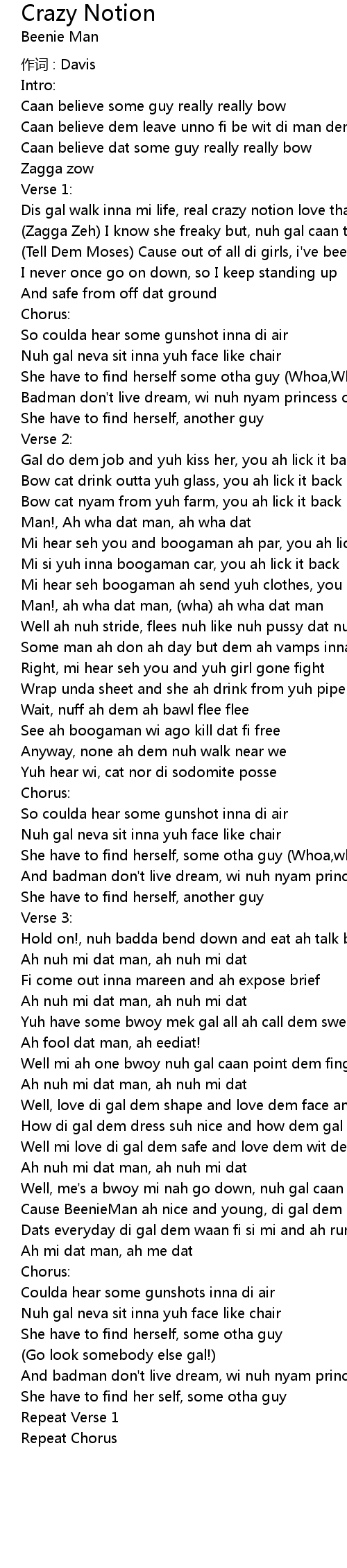 | Dis gal walk inna mi life, real crazy notion love that she found | |