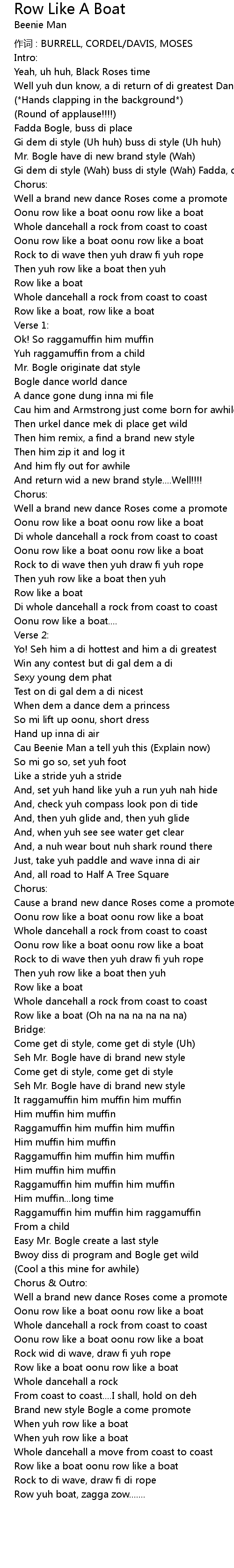 | Row yuh boat, zagga zow....... |