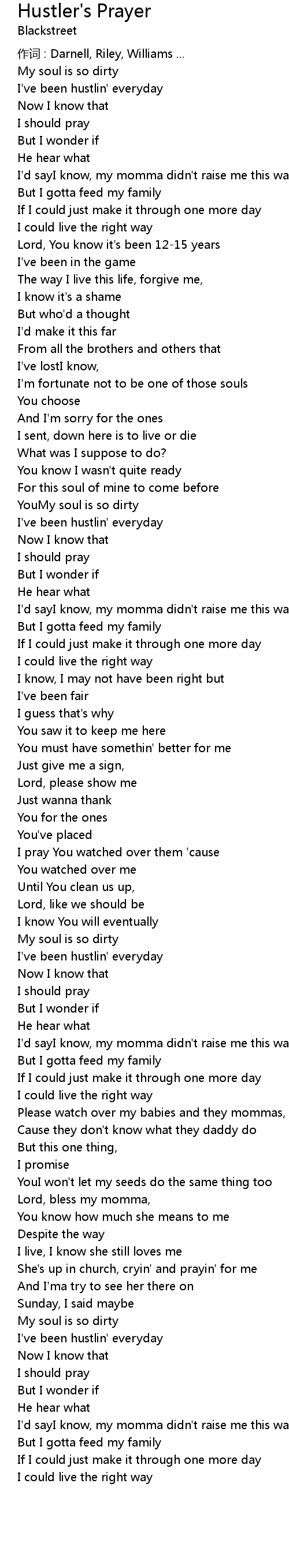 | Song | Hustler's Prayer |
