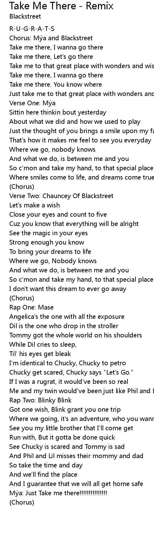 | Take me there, Let' s go there | |