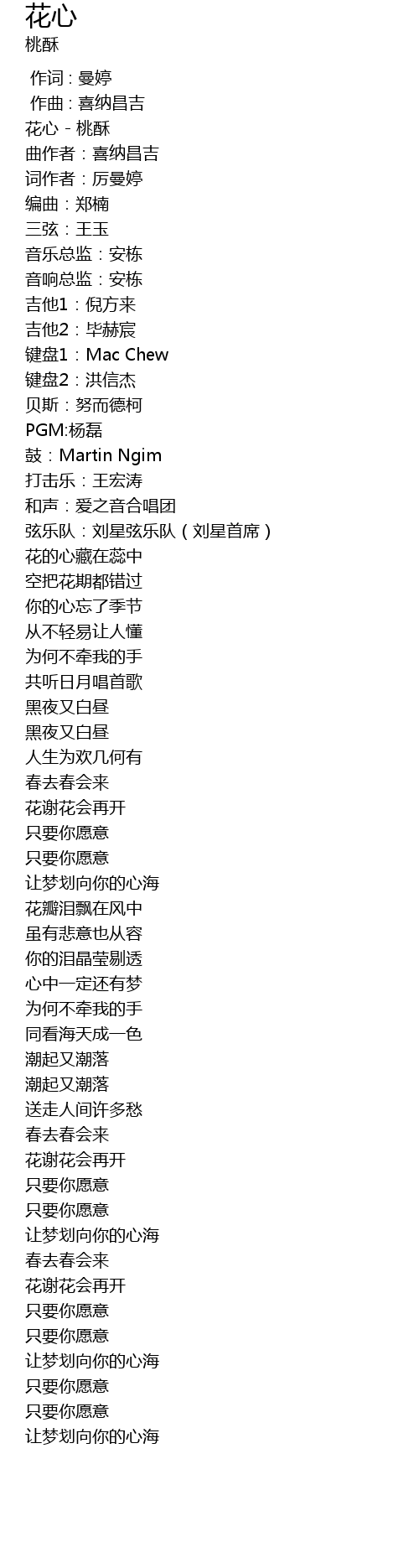 | [00:03.189] | 花心 - 桃酥 |