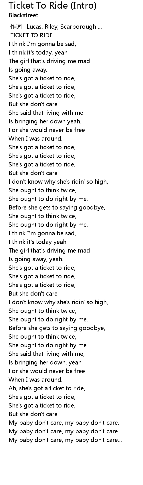 | [00:00.00] | TICKET TO RIDE |