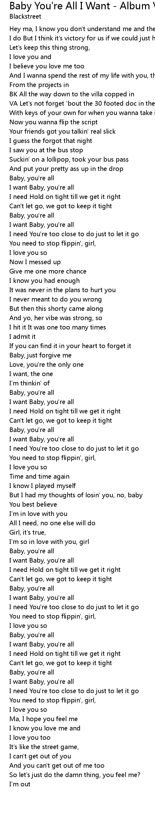 I want Baby, you're all |