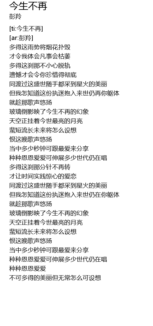 | [03:50.910] | 种种恩恩爱爱可伸展多少世代仍在唱 |