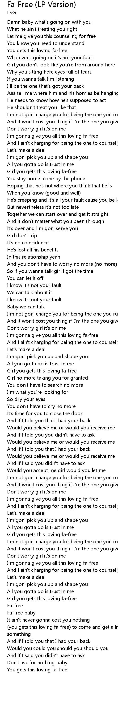 | [00:27.148] | You gets this loving fa-free |