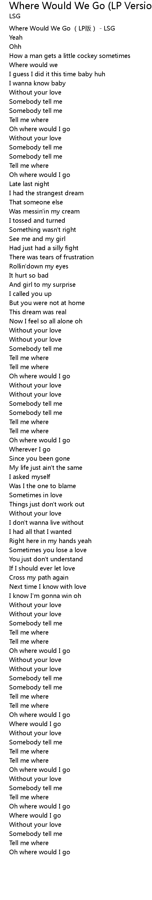| [00:00.476] | Where Would We Go (LP版) - LSG |