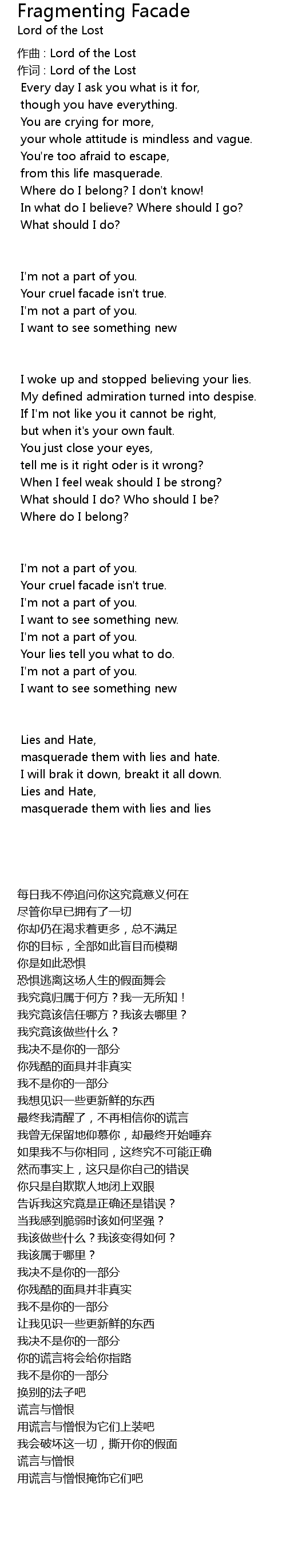 | 作词 : Lord of the Lost | |