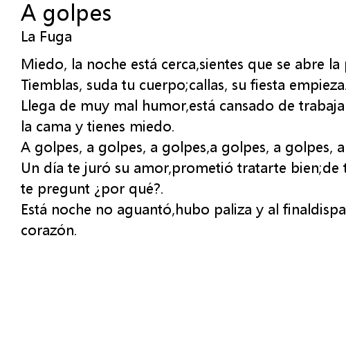 | Está noche no aguantó,hubo paliza y al finaldisparó a tu corazón,a tu corazón. |