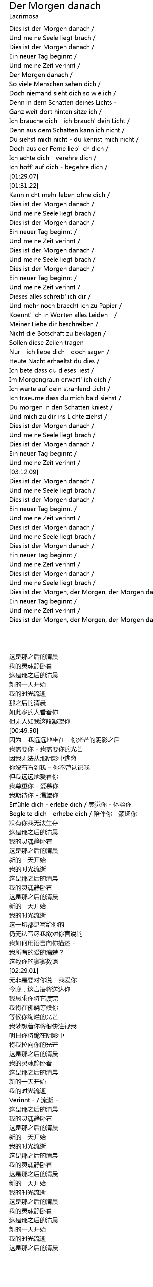 Dies ist der Morgen, der Morgen, der Morgen danach / |