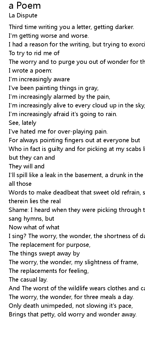 Words to make deadbeat that sweet old refrain, self-inflicting my pain and therein lies the real |