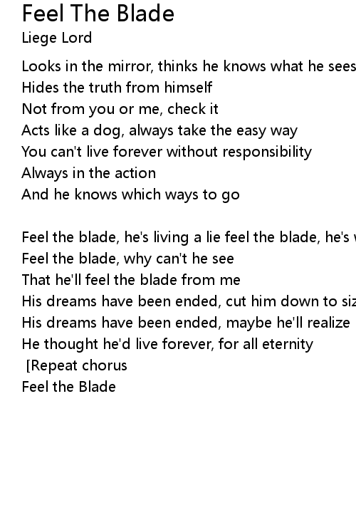 Feel the blade, he's living a lie feel the blade, he's wondering why |