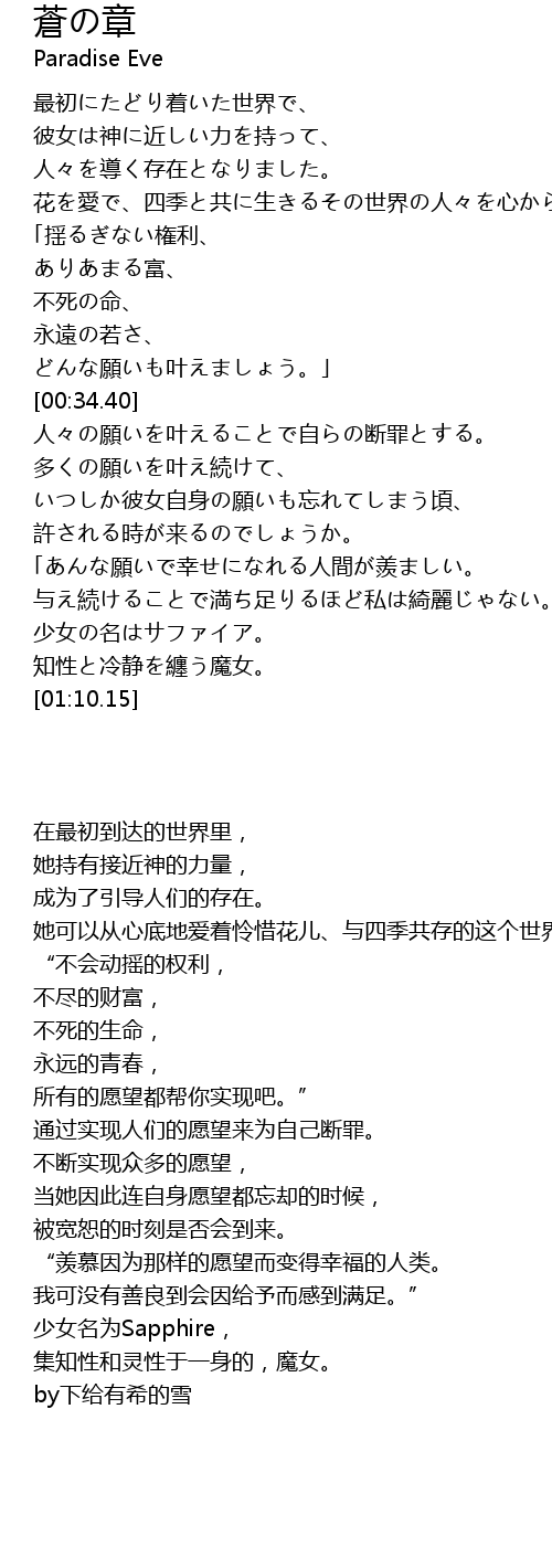 | [00:35.36] | 人々の願いを叶えることで自らの断罪とする。 |
