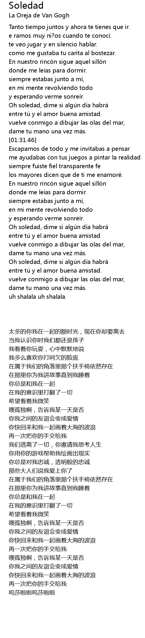 | [02:31.32] | Oh soledad, dime si algu n di a habra |