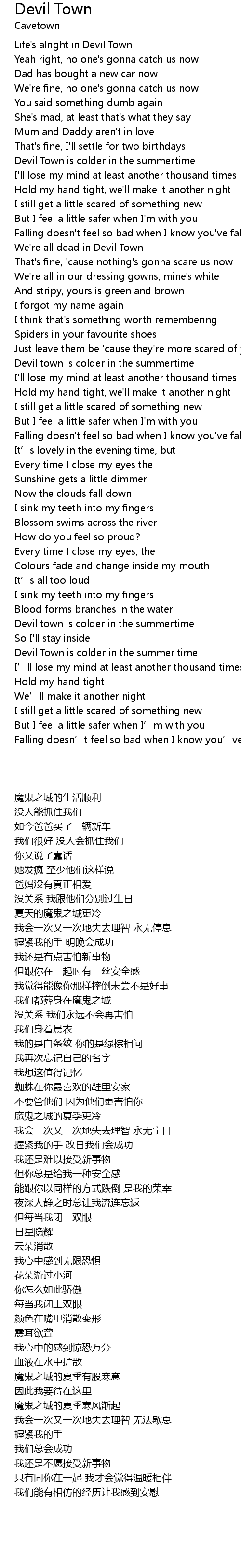 | [01:12.51] | Devil Town is colder in the summertime |