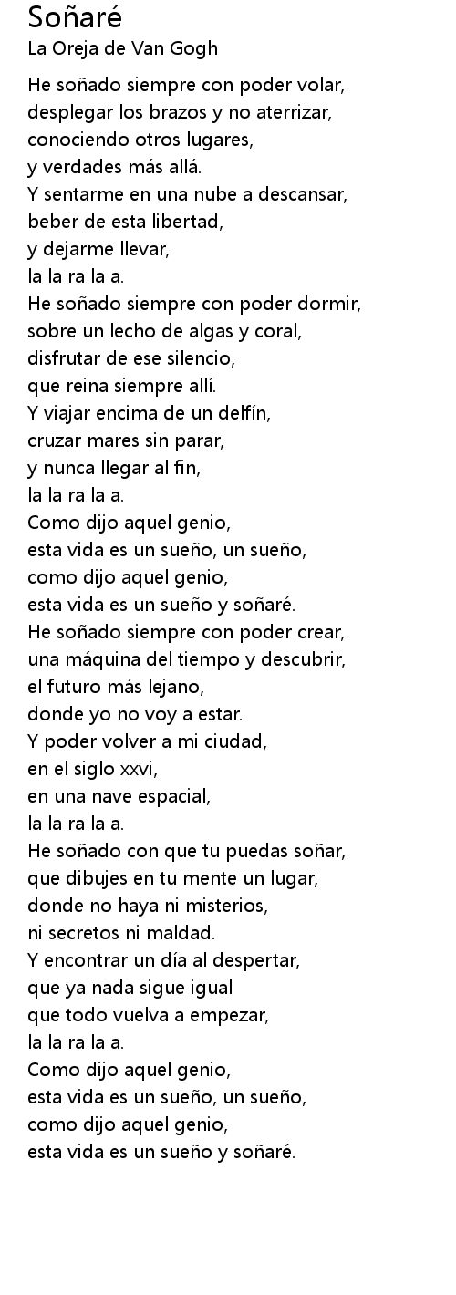 | esta vida es un sue o y so aré. |