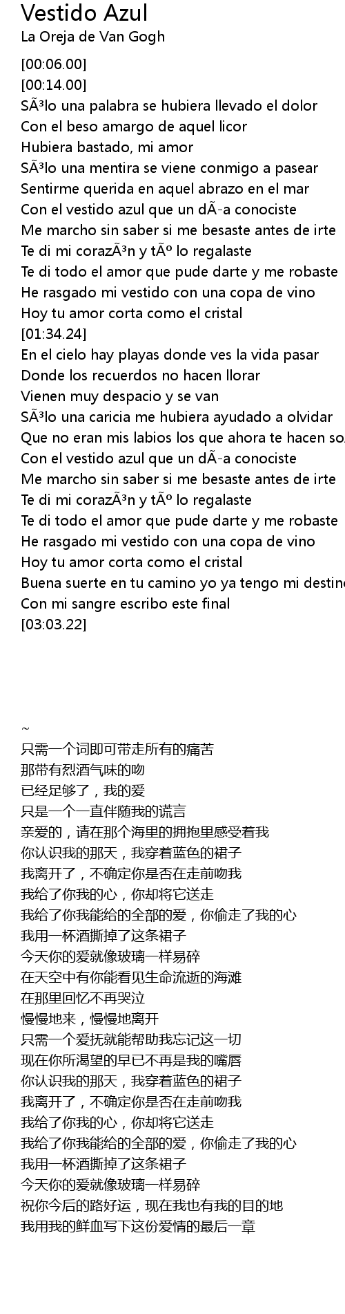 | [02:19.30] | Con el vestido azul que un d a conociste |