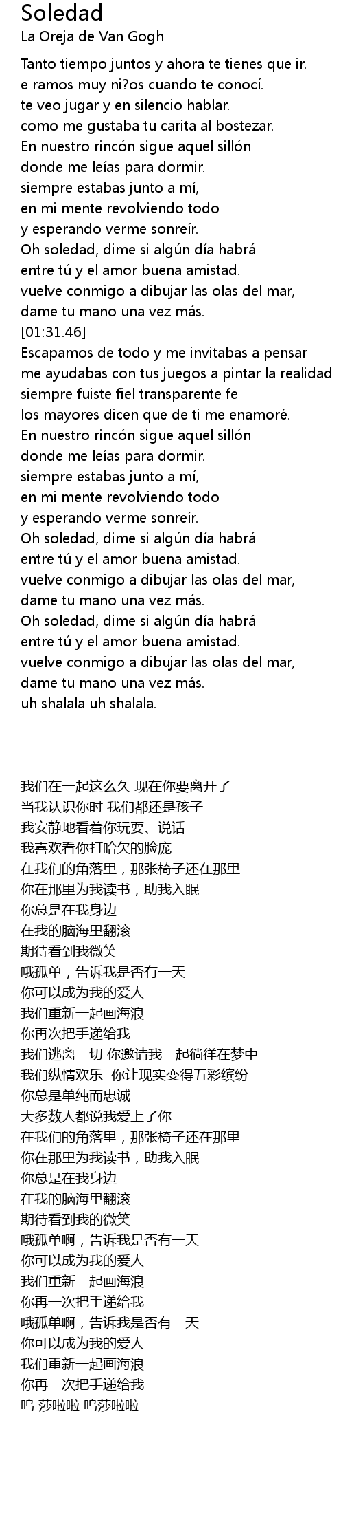 | [02:59.32] | Oh soledad, dime si algu n di a habra |