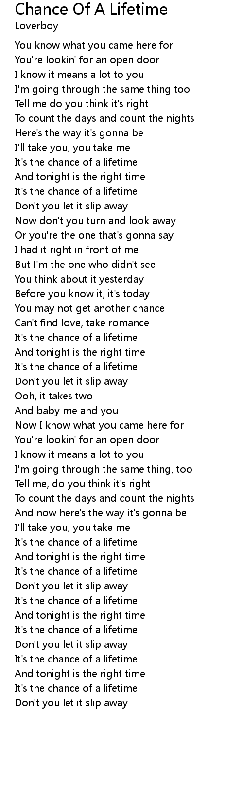 It's the chance of a lifetime |