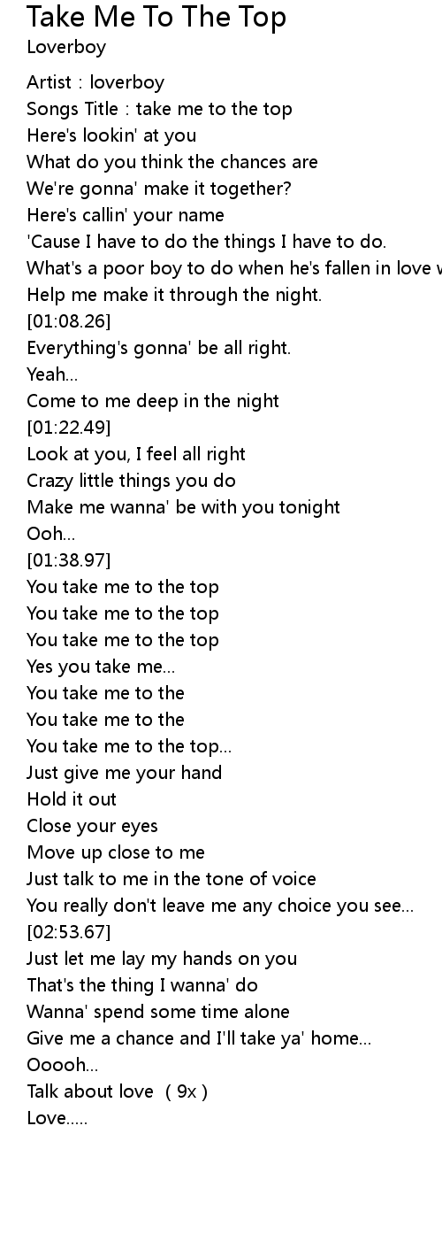 | [04:25.26] | Give me a chance and I' ll take ya' home... |