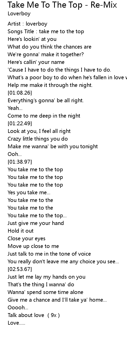 | [02:03.14] | You take me to the top |