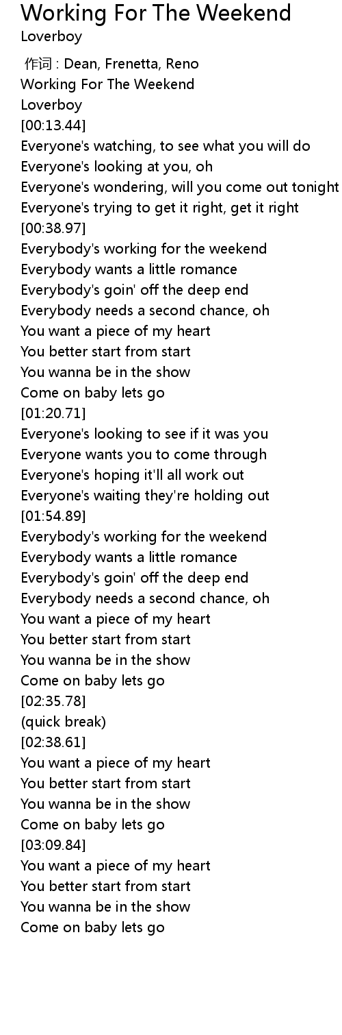 | [00:07.98] | Working For The Weekend |