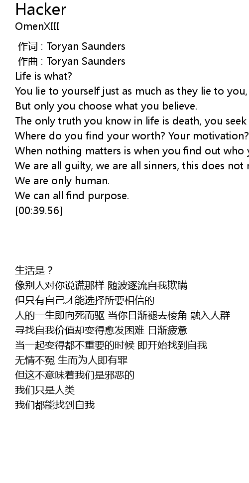 | [00:13.71] | The only truth you know in life is death, you seek all others |