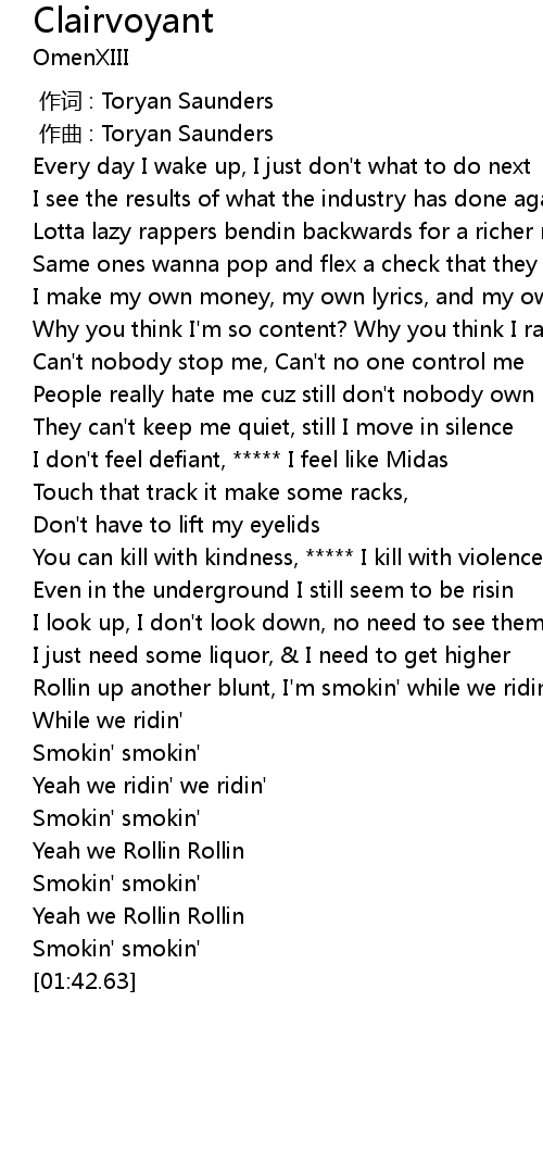 | [01:24.44] | Rollin up another blunt, I' m smokin' while we ridin' |