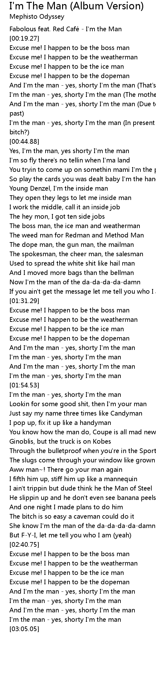 | [03:02.11] | I'm the man - yes, shorty I'm the man |