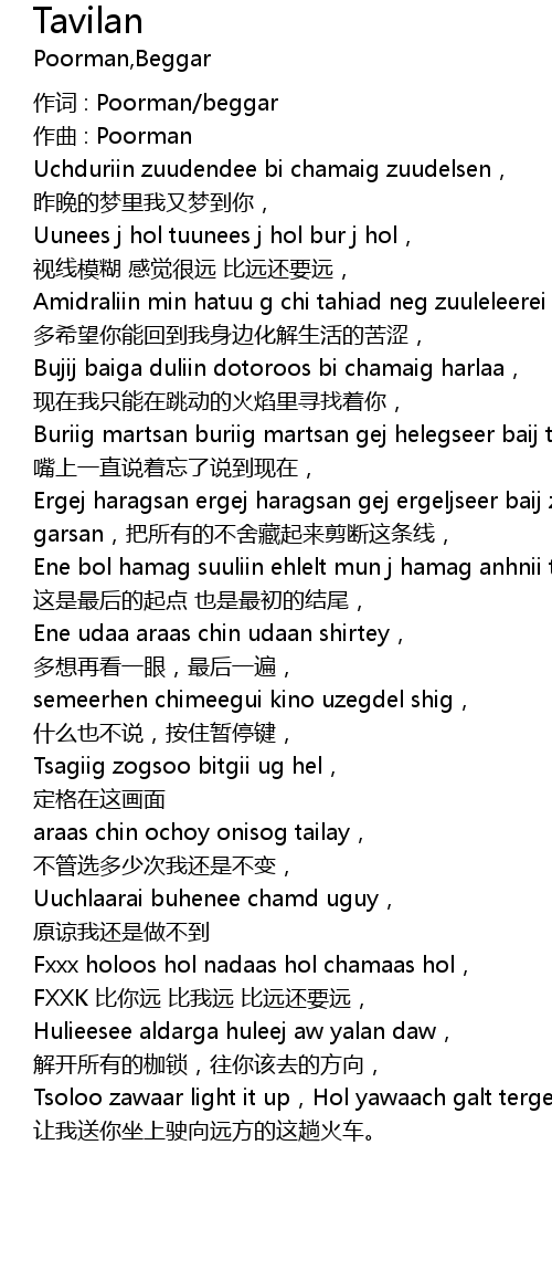 | 作词 : Poorman/beggar | |