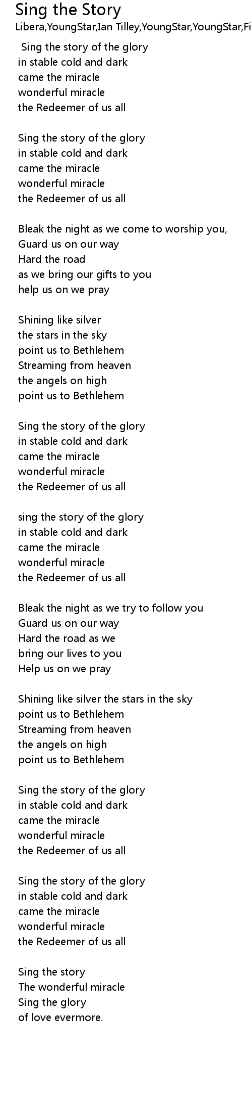 Sing the story of the glory |
