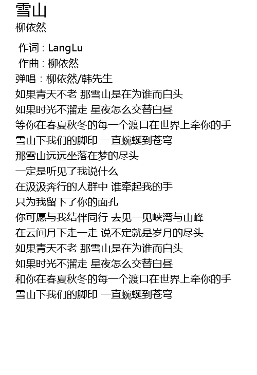 | [00:14.451] | ru guo qing tian bu lao na xue shan shi zai wei shui er bai tou |