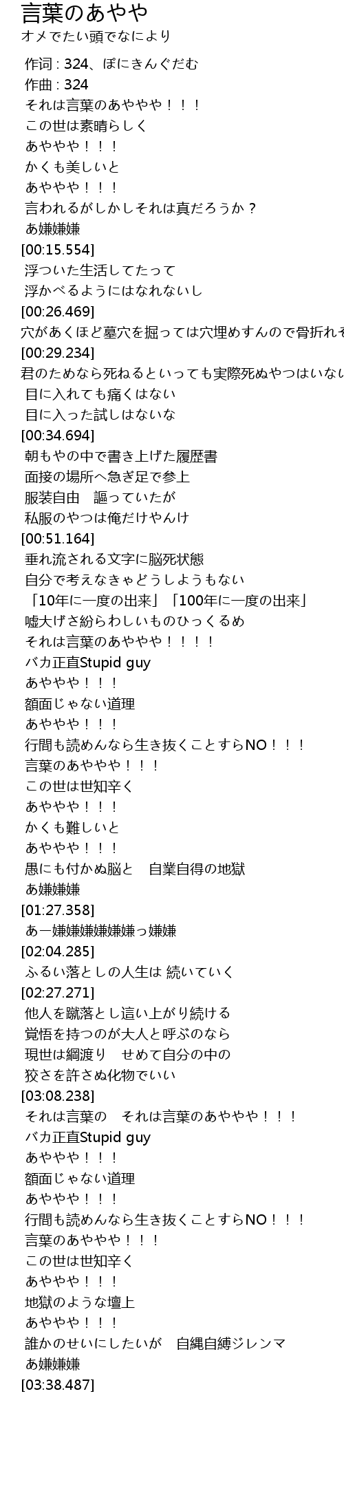 | [03:32.268] | あ嫌嫌嫌 |