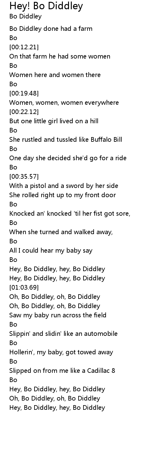 Hey, Bo Diddley, hey, Bo Diddley |