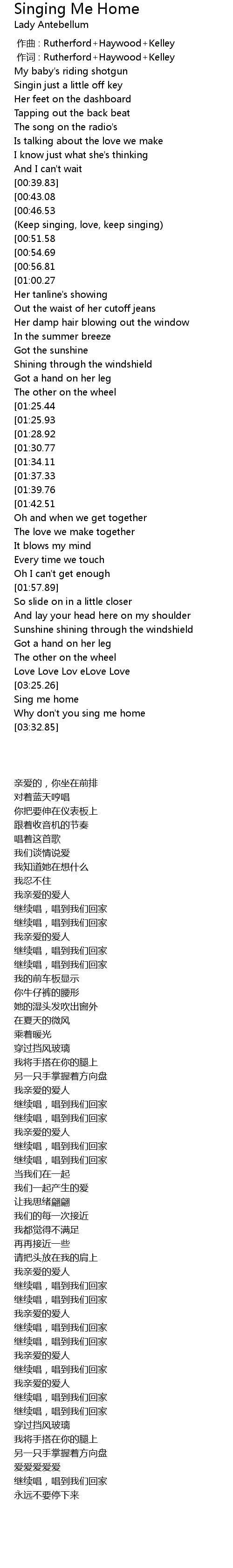 | [02:38.82][01:37.33] | Keep singing me home |