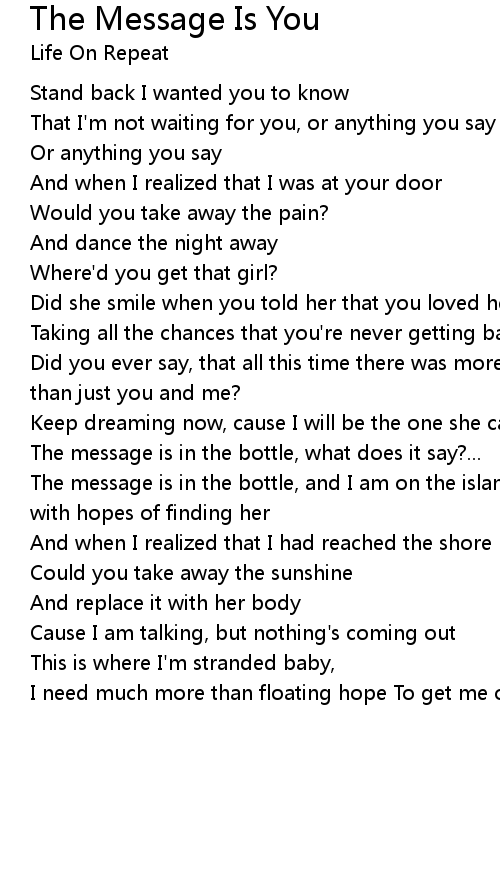 The message is in the bottle, and I am on the island |