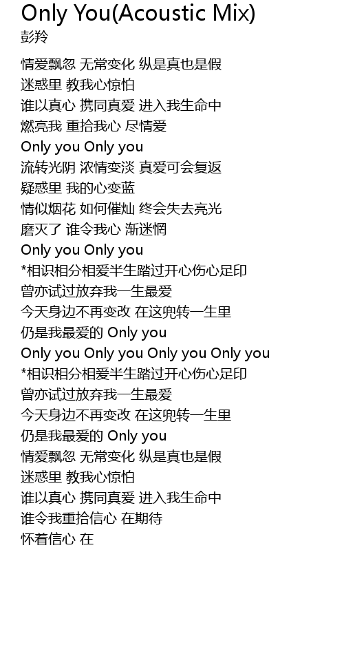 | [00:34.47] | Only you Only you |