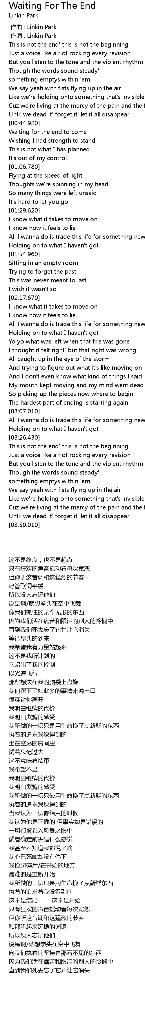 | [00:00.00] | 作曲 : Linkin Park |