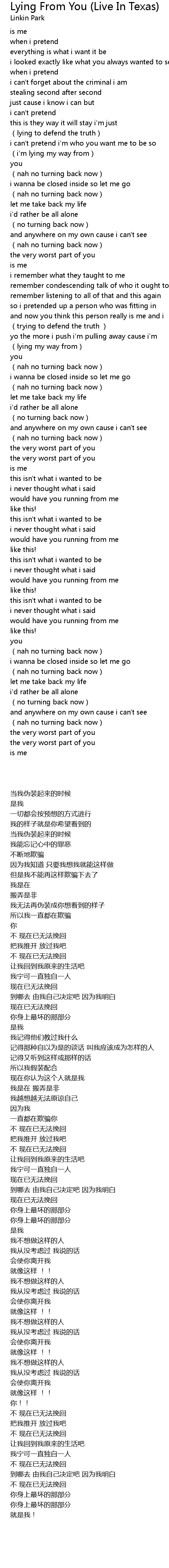 | [00:41.370] | i can' t pretend i' m who you want me to be so |