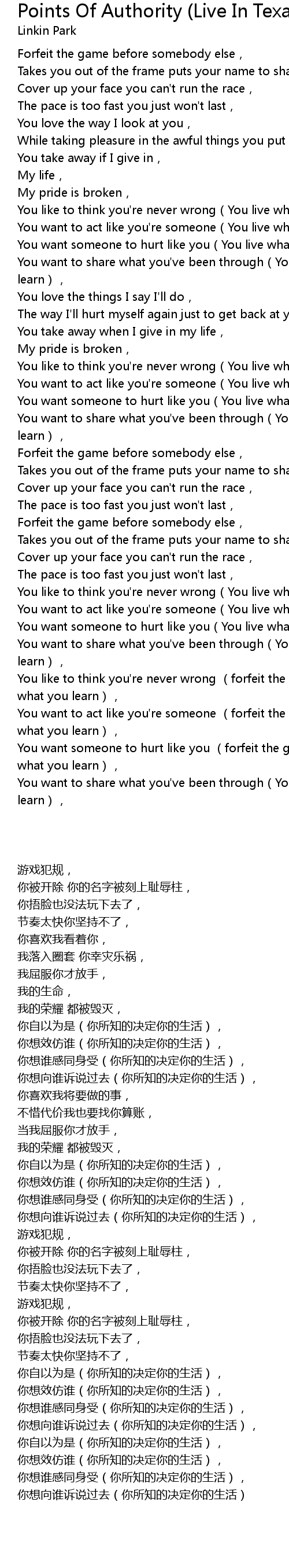 | [02:41.04] | You like to think you're never wrong (forfeit the game)(You live what you learn), |