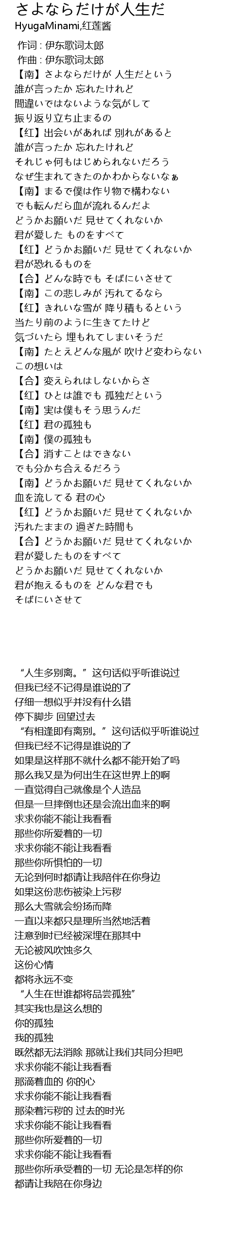 | [00:26.421] | 【南】さよならだけが 人生だという |
