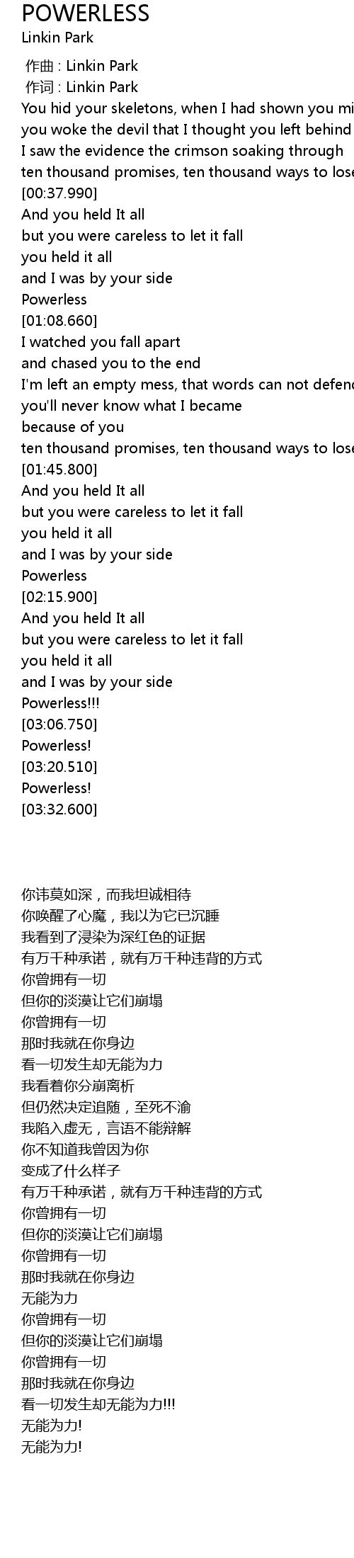 | [00:01.00] | 作词 : Linkin Park |