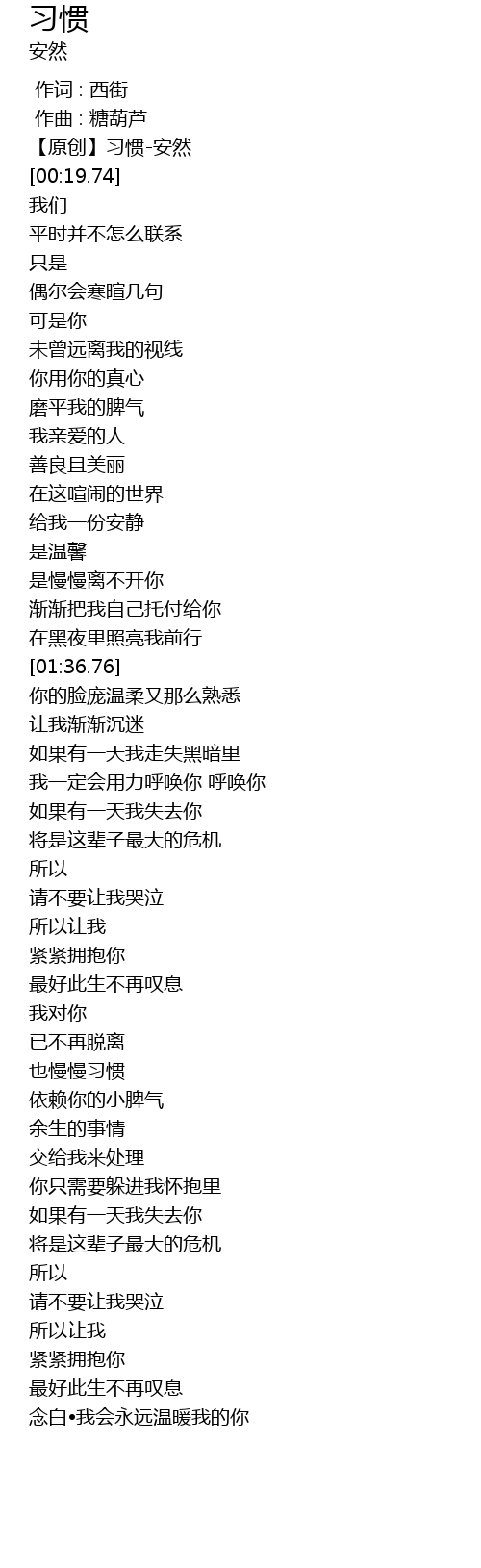| [00:09.940] | 【原创】习惯-安然 |