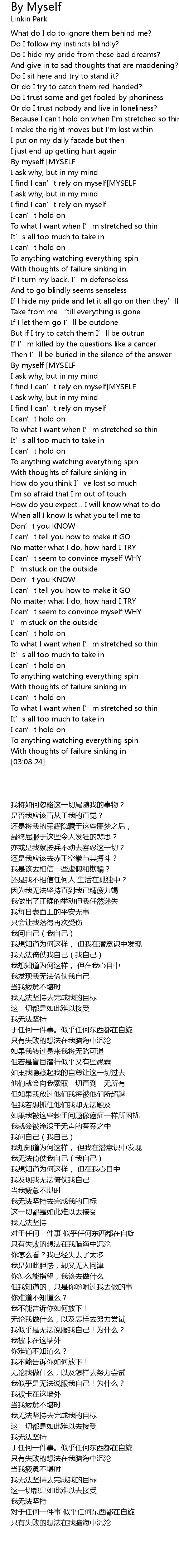 | [01:28.98]I find I can’t rely on myself[MYSELF] | |